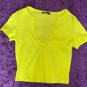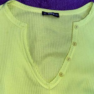 Neon Yellow V-cut Neck Button Tee (BRAND NEW)