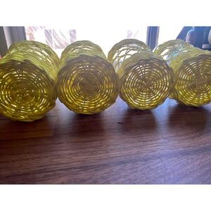 4 Neón yellow wicker cup holders & 4 acrylic cups