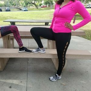 Two piece activewear perfect for the gym, yoga, jogging or to run errands with. Stretchy and comfy. The leggings have little openings with make it cute and fresh while working out. The hoodie has pockets that come in handy.