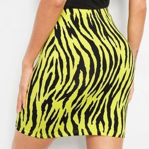 Neon Yellow Zebra Print 2-Piece Skirt Set