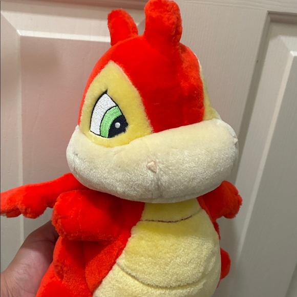 Adorable plush toy with vibrant red and yellow colors. Soft and cuddly. Perfect for kids.