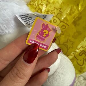 Adorable plush toy in white and pink. Perfect for small pet lovers and collectors. Cybunny mystery plush