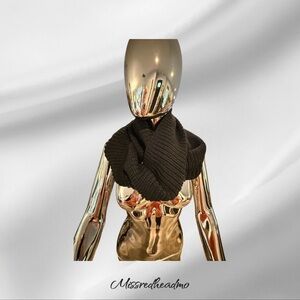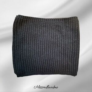 Stylish black knit infinity scarf. Perfect for any outfit.