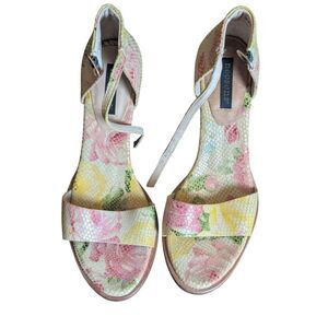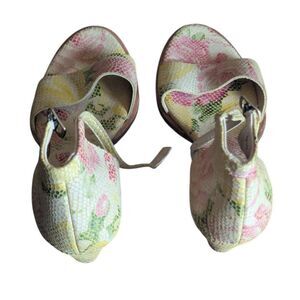 Neosens Floral Snakeskin Print Leather Block Heel Sandals US 8.5 Made in Spain