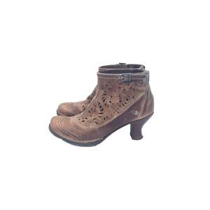 Neosens Women Brown Leather Size 8 Cutout Heeled Ankle Shoes Booties EU 40