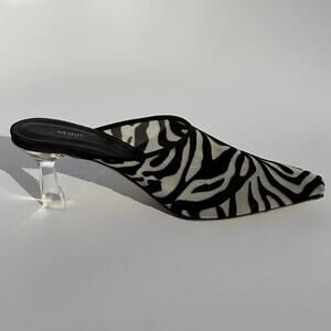 The Electra mules from Neous are a hand-knitted sheer slip-on style, updated with an animal-print upper that we're going wild for. The body is a cream mesh with black velvet woven throughout. The elongated blunt square toe and architectural Perspex heel are iconic design details from the fashion label that expertly complete the pair with equal parts contemporary, elegance and understated glamour. Brand new in box with dust bag. Retailed for $720.