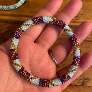 Nepal Glass Beaded Crochet Bangle Bracelets Sashka Co. Boho Hippy Colorful Set 2