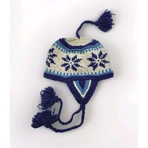 Nepal Wool Ear Flap Ski Fleece Lined Snowflake Peruvian Icelandic Floral Hat