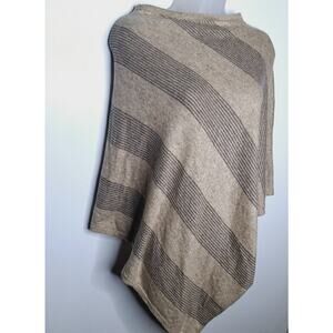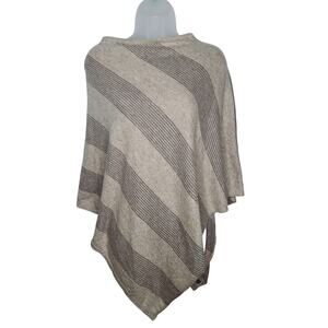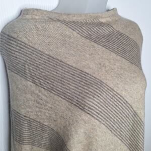 Nepali Cashmere Poncho Asymmetrical Knit Wrap Stripe Oatmeal Gray Lightweight