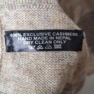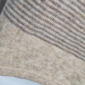 Nepali 100% Cashmere Poncho Asymmetrical Knit Wrap Striped Oatmeal Gray O/S Lightweight
