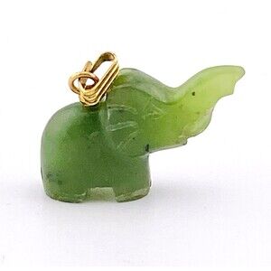 This adorable elephant is fashioned from natural Nephrite Jade with 1/20 12k gold filled bail. It is in excellent condition.