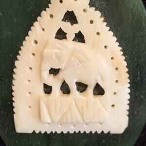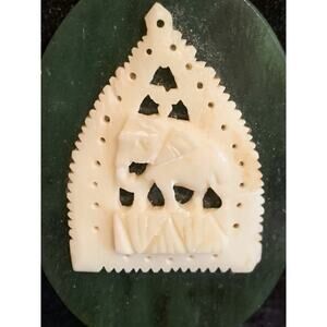Nephrite and Beige Carved Vintage Elephant Eclectic Necklace