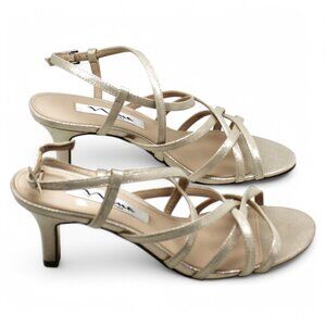 Material: Metallic fabric upper; leather outsole