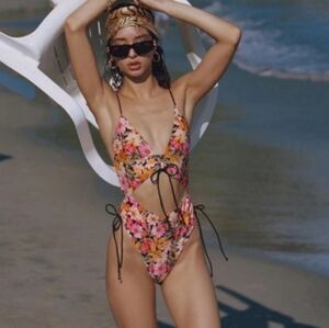 Neq! For Love And Lemons Vienna Floral Cutout One-Piece Swimsuit