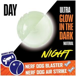 -Nerf Dog Glow toys let you and your dog continue playing in low-light or night.