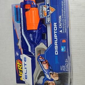 Set of Nerf Elite blasters and a Fortnite Micro RL. Features blue, white, and orange colors.
