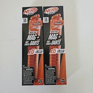 Nerf Pro Mag with 15 Half-Length Darts Magazine plus Refills **Lot Of 2**
