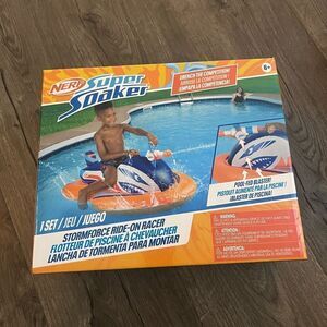 Nerf Super Soaker Stormforce Ride-On Racer – Inflatable Pool Float with Pool-Fed
