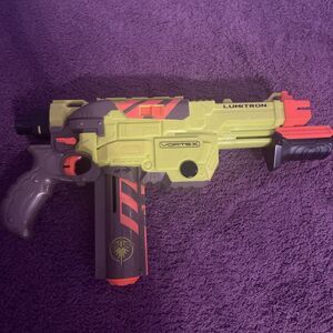 The Nerf Vortex Lumitron Disc Blaster is a toy gun from the popular NERF brand, designed for kids ages 8 and up. This product is part of the Vortex product line and comes with 10 discs for added play value. With the ability to launch colorful discs propelled by a fun and safe foam power source, this blaster provides hours of imaginative play for young children.
