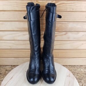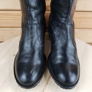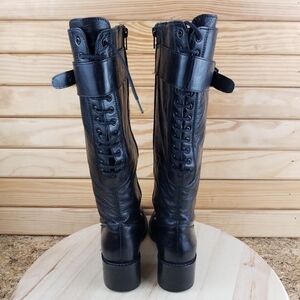 Nero Giardini Black Soft Leather Riding Biker Boots Side Zip Lace-up Back 37 EUR