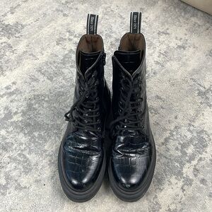 Nero Giardini Cocco Mock Croc Combat Booties Black Embossed Leather Sz 40