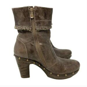 Nero Giardini Italian Distressed Leather Zip Ankle Clog Boots - Size 9.5 EU 40