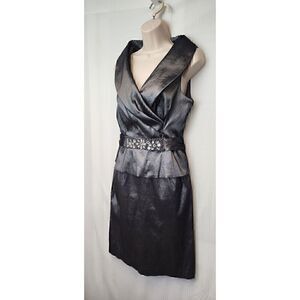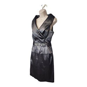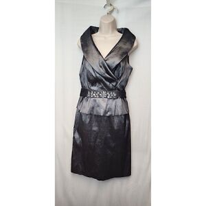 Nero Shawl Neckline Sleeveless Sequin Accent Metallic Silver Knee-Length Sz 14