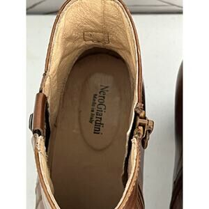 NeroGiardini Brown Leather Studded Side Zip Block Heel Boots Size 39 or 9 $295