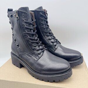 NeroGiardini Studded Leather Platform Combat Ankle Boot Booties Black EU 39 US 9