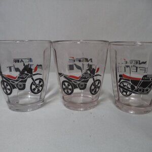 Nescafe Cafe Viet juice tumbler glass 3.7" Motorcycle Set 3 clear black red NEW