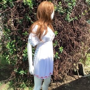 Neslay Paris White Rayon Embroidered Empire Waist Beach Pool Coverup