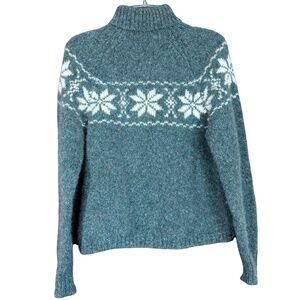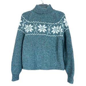 Ness of Scotland Poinsettia Pattern Turtleneck Green Tweed Sweater Size M