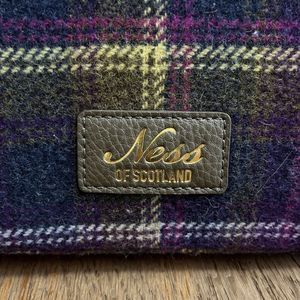 Ness of Scotland Vintage Wool Plaid Purse Backpack Purple Green Tartan Plaid VTG