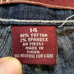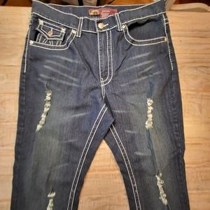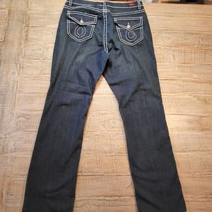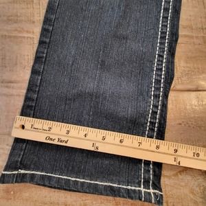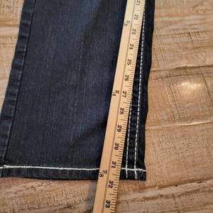 Nesso Denim Jeans Womens Sz 14 Thick Stitching Blue Dark Wash Distressed Stretch