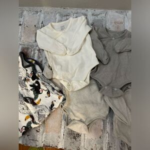 This bundle comes with one sleep sack that fits 0-6 months and then 4 onesies