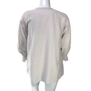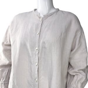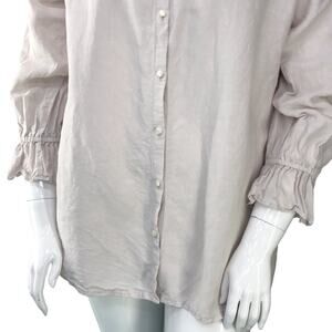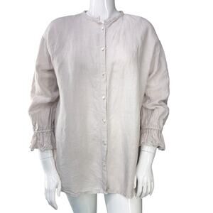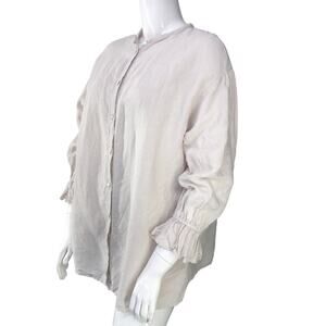 Nest Robe Womens Size OS One Size Blouse Button Up Band Collar Linen Ruched Cuff