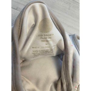 Some wear on the stitching, a tiny hole and spot. And fading of the image