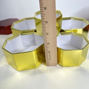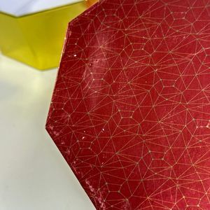 A fun festive set of 5 nesting boxes. The red and gold design adds a touch of sophistication to any room. The boxes are made of durable cardboard and come with lids for easy storage. Use them as gift boxes for anything from jewelry to stationery or simply display them as decorative accessories.