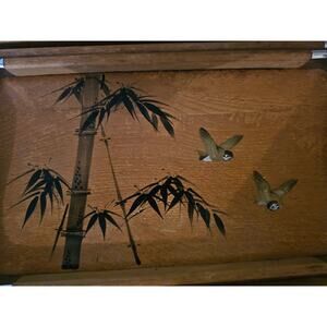 3 trays - 15 x 10", 14 x 8.5", 12.75 x 7.25", silver plated corners with a handle on each end. All 3 trays have the same picture.