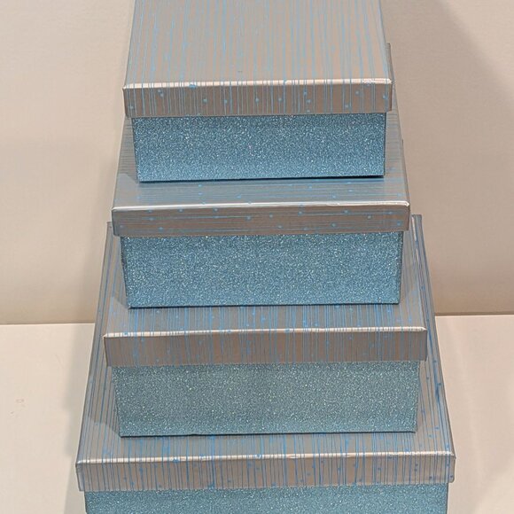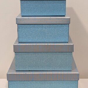 Set of 4 gift boxes, never used. Great for storage or gifting. Tops are sparkle so good for holidays too.