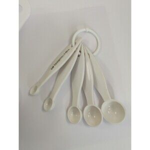 Teaspoon measureing spoons are included. * size label smeared on 1/8 & the rest have no measurements on them. The round shape and solid pattern make them a versatile addition to any kitchen. Get accurate measurements without the hassle of traditional measuring cups. No chips cracks or stains. Clean.