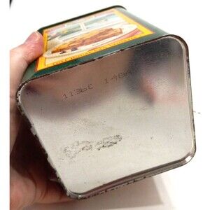 This is a Nestle limited edition tin can featuring Toll House Cookie Pie Mix. The vintage square top tin is green in color and is a collectible advertising piece. It is about 6.75 inches tall and 4.75 inches by 4.75 inches. The tin does not specify a country of manufacture and has not been modified. It does have some rusting around the top and the bottom. Please see pictures for more details.