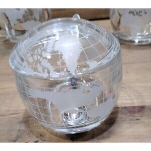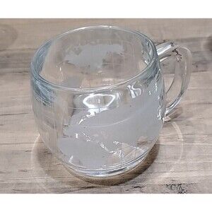 Nestle Nescafe Clear Glass Etched Globe World Coffee Mug-Set Of 4 Vintage