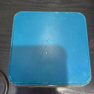 Charming blue tin with a vintage design featuring a child eating cookies. Perfect for storage or decor.