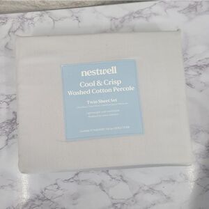 Nestwell Cool & Crisp Cotton Percale Twin Sheet Set and Organic Cotton Mattress Protector. Soft and breathable.
