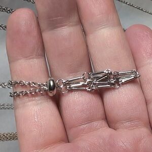 Adjustable 18" chain with a "bar linc" style net. video shows how to remove and replace the Chrystal -sold separately. Recommended size of crystal up to 0.53" in diameter.