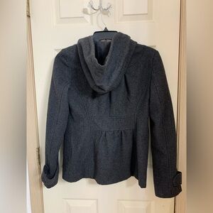 Net Collection Women's Stylish Pea Coat Jacket Hood Pockets Gray Wool Size 8