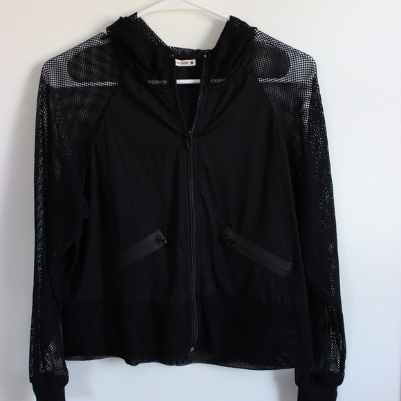 Adorable netted jacket, perfect for spring time. Only sleeves and hood are netted, frontal and back part are covered.