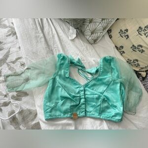 @zeeshaan 3rd pic is the back of the blouse, last 3 pics are pics of additional blouse I have (size 32) for the saree. You can choose either or if you decide to buy. The matching jelwery for the saree is also posted on my closet