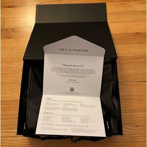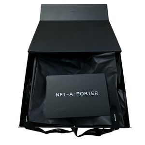 Net-A-Porter pristine black textured Gift Storage Box/Letter/Tissue Paper and Ribbon closure.